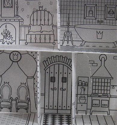 Leuk voorbeeld is het poppenhuis gemaakt van wit karton. De binnenkant bestaat uit 5 kamers die ingekleurd kunnen worden. Beneden in het kasteeltje heb je een luxe hal, de koninklijke woonkamer met 2 troontjes en de keuken. Boven vind je de badkamer met bad op pootjes en een royale slaapkamer met 2-persoonsbed en een luxe open haard.