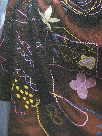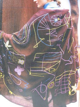 Omslagdoek is altijd handig. Ik zag tijdens het winkelen een prachtige omslagdoek van Oilily, geborduurd met vrij borduurwerk en glinsterende pailletten en kleine kraaltjes. Zelfs hier en daar een applicatie gemaakt met organza. Prettig om kant en klaar te kopen, maar ook een bron van inspiratie om er zelf een te maken.