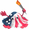 Rol het zilverpapier in de vorm van een kegel en plak vast. Doe er het rood en oranje vloepapier in en plak hier en daar vast. Lijm de toorts aan één hand.
