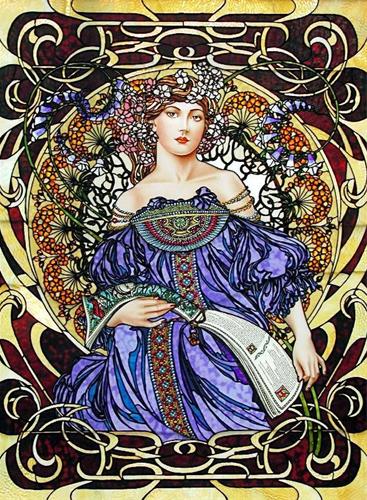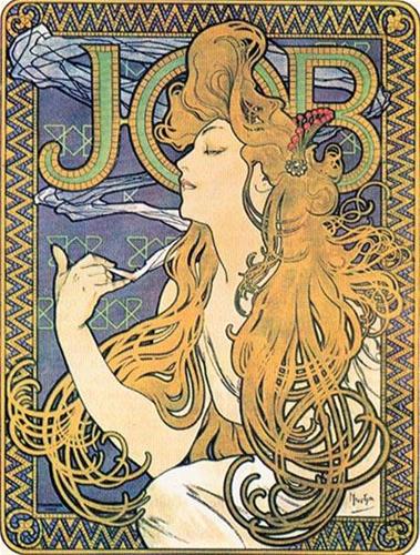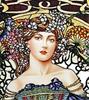 affiche voor Sarah Bernhardt. Veel van de werken zijn geinspireerd door zijn Slavische geschiedenis en op een zeer unieke elegante stijl verfijnd getekend. Mucha is wereldberoemd door zijn ineengestrengelde en gebogen vormen, intrigerende ontwerpen en zijn artistiek weergegeven uitdrukkingen van vrouwen.