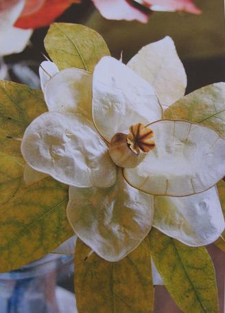 Tijdens een droge periode in de herfst ga je in het bos en in de tuin op zoek naar gedroogde zaaddozen en bladeren. Bijvoorbeeld zaaddozen van de klaproos en bladeren van de judaspenning, eik, laurier en klimop e.a.