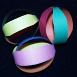 Elk paasei wordt gemaakt van vier stroken papier van 1 1/2 cm breed één of verschillende kleuren. Van iedere deze strook knip je aan de uiteinden een puntvorm. Nu ben je klaar om de hangende paaseieren te maken.