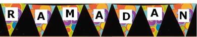 Simpel en feestelijk. Om een ramadan slinger te maken print of schrijf je op 7 stevige (gekleurde) vellen A4 papier de letters