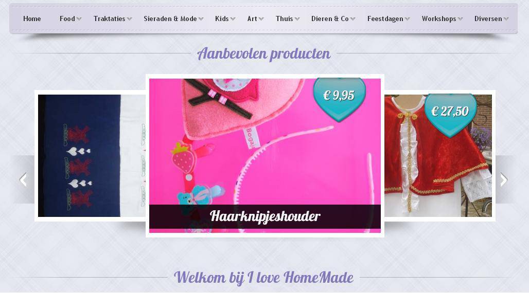 Uniek, speciaal, op maat, bijzonder, met liefde, opvallend en kwalitatief! Allemaal termen die we mogen gebruiken als we creatief Nederland omschrijven. In dit kleine landje loopt het over van creatief talent en ilovehomemade.nl probeert al deze talenten bij elkaar te brengen. Taarten, sieraden, poncho’s, kraamcadeautjes, schilderijen of lakentjes, zij verzamelen het en tonen het aan een groter publiek. Ook staat de site altijd open voor nieuwe producten en nieuwe categorieën.