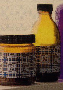- Verwijder de originele etiketten van de flessen en potten. Verwijder eventuele resten met een watje met wasbenzine