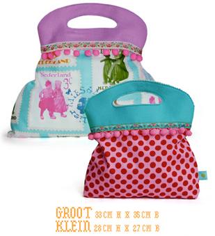 Een DIY (do-it-yourself) pakket met alles erin wat je nodig hebt om een klein tasje van 28 cm hoog en 27 cm breed of een groot tasje te maken van 33 bij 35 cm.