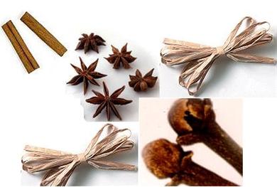 Koop een streng raffia en maak een slinger van dit gedroogde fruit en doe er afwisselend een kanaalstokje en steranijsjes tussen door.