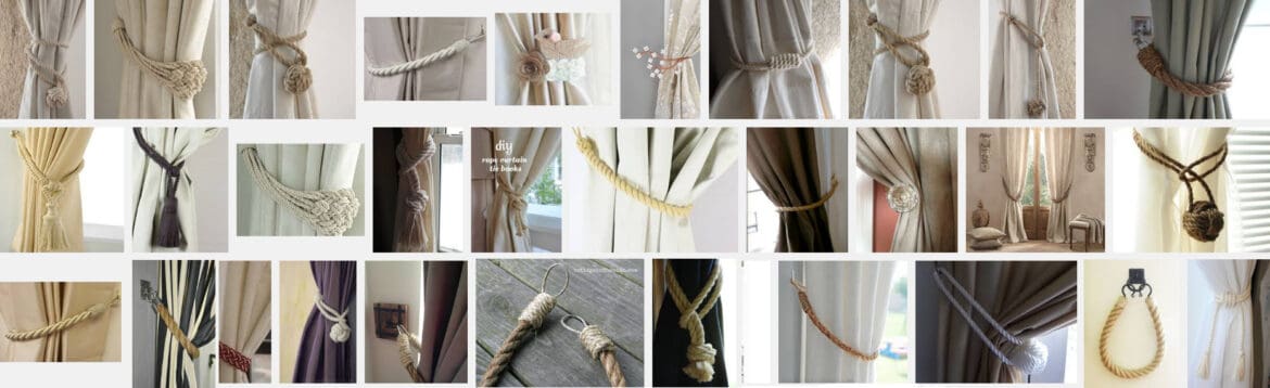 - Je kan de gordijnkoorden ook knopen met (vlas)touw, deze vind ik heel erg mooi en modern…..