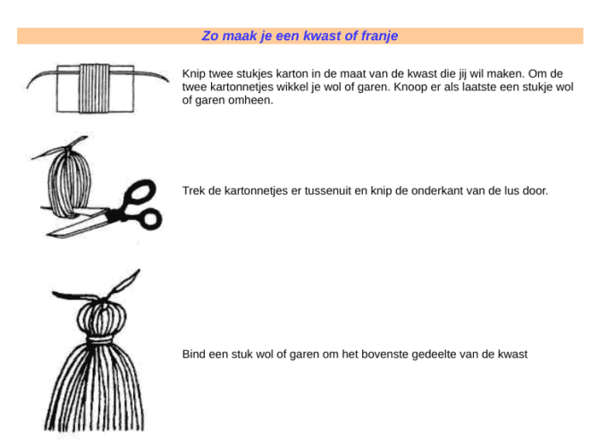 - Bekijk de video’s “Hoe een tassel/franje maken”, net zo groot als je zelf wil