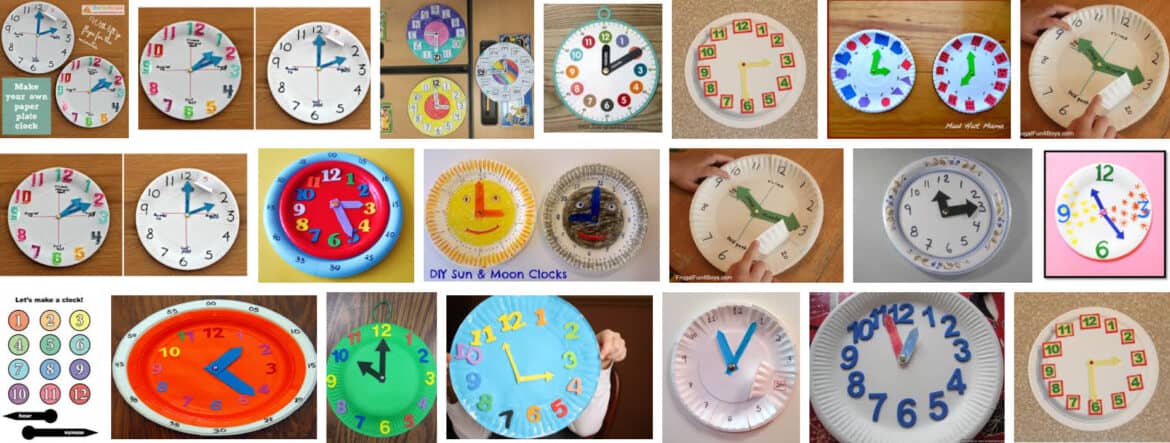 Klok knutselen en klok kijken oefenen. Het is leuk om een klok te maken met de kinderen en handig om te gebruiken bij het oefenen met klok kijken. Je hebt nodig een stuk karton en stevig gekleurd papier, viltstiften en een splitpen.