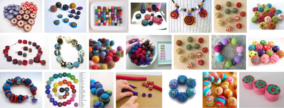 - Maak meerdere vilten kralen met verschillende oproldiktes