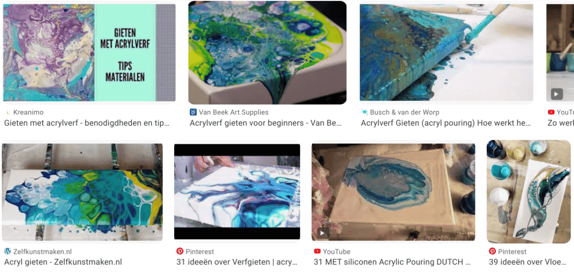 Heb je flink wat geoefend en ben je tevreden over de resultaten, dan kan je op schildersdoek een kunstwerk maken met deze gemengde techniek.