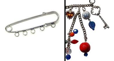 Aan een Schotse speld met ogen hang je diverse passende bedels, kralen, lint of iets wat jij leuk vindt.
