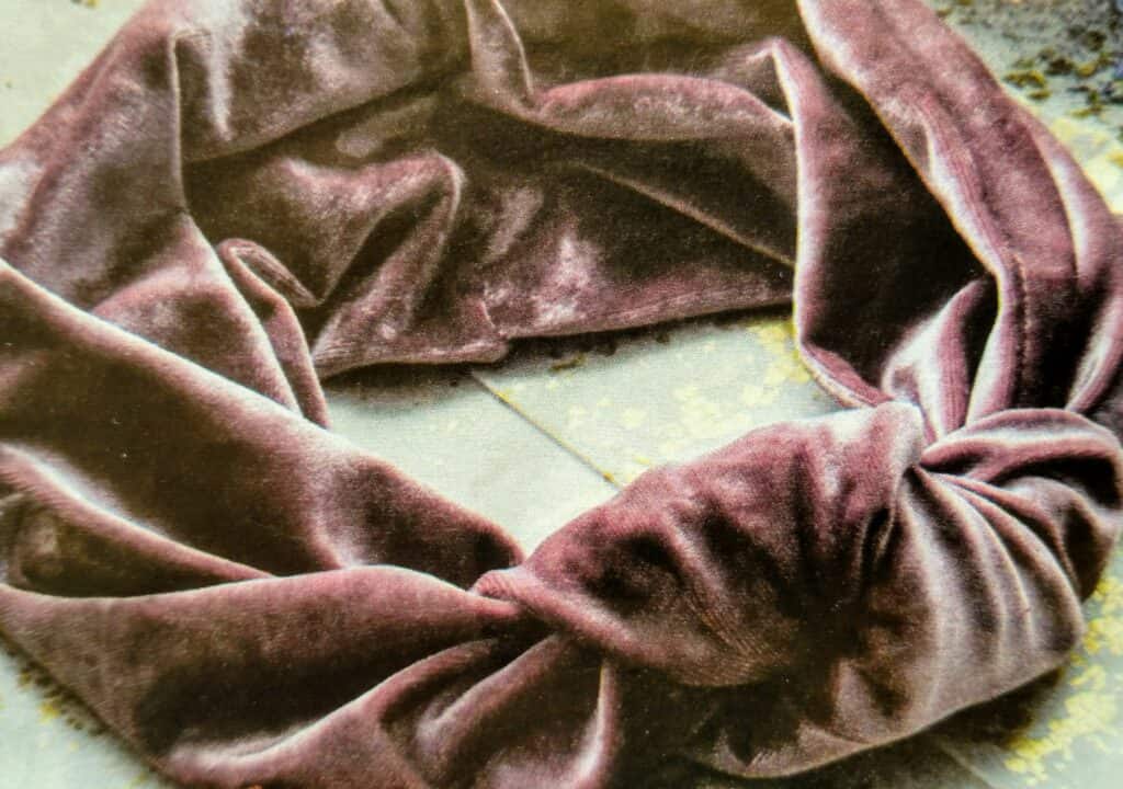 - Het overgebleven uiteinde met de verkeerde kant en een stukje naar binnen gevouwen over de aan elkaar gestikte uiteinden en naai met de hand vast met een blinde steek. Klaar is je haarband.