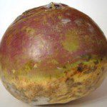 - Snij van de bovenkant van de biet/knol een plak van ongeveer 3 à 4 cm dik af.