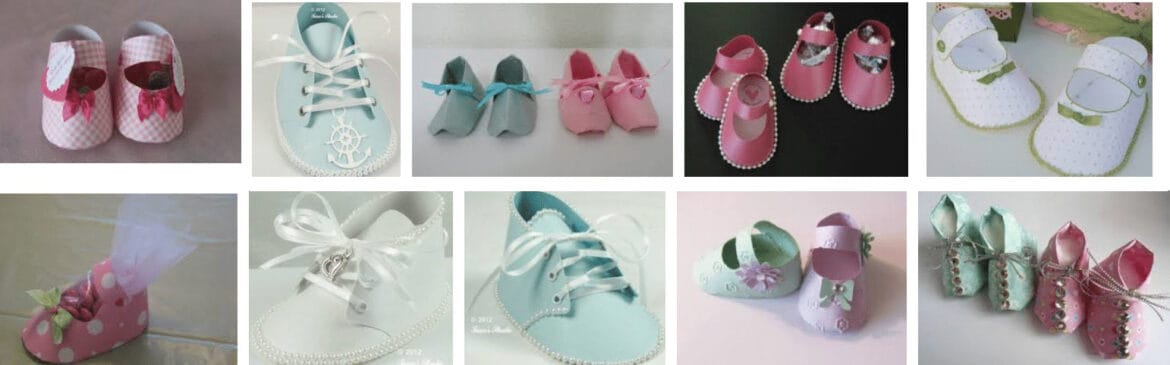 Wil je direct beginnen, dan heb ik hier nog enkele ontwerpen van babyschoentjes om te maken van een geboortekaartje of van stevig papier :