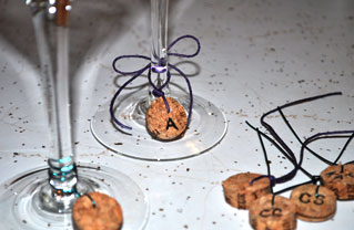 Wijnglas labels tijdens feestje voor eigen wijnglas
