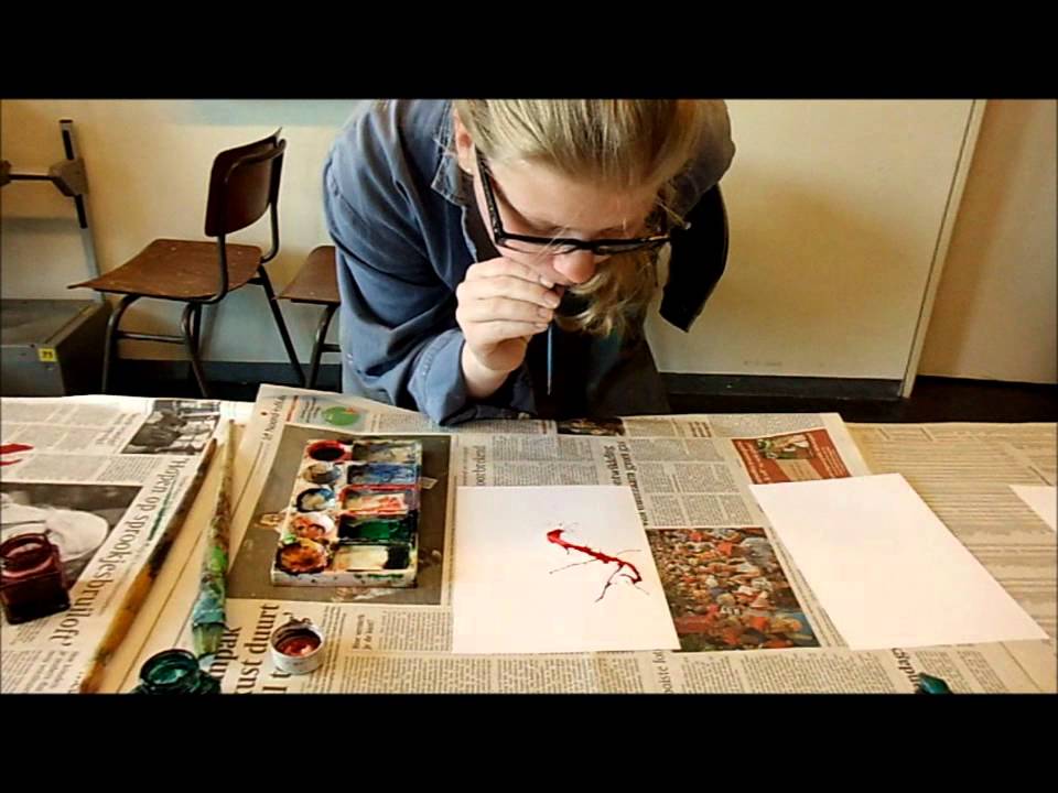 - Als je hem vol genoeg vindt, ga je er naar kijken. Wat gebeurt er allemaal en laat je fantasie eens de vrije loop. De schildering blijft veranderen zolang het vel nog nat is.