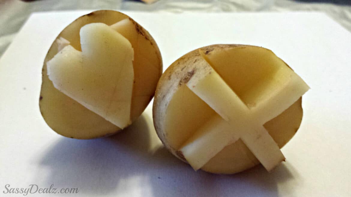 - Een aardappelstempel is niet alleen leuk voor je t-shirt, je kunt het ook gebruiken voor een tafelkleed of placemats. Zoals de naam het al zegt, is het belangrijkste ingrediënt een aardappel. Ik weet het, het klinkt een beetje raar. Wat heb je nodig?