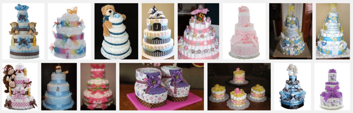 - Verwerk in de geboortetaart luiers in twee maten, niet de kleinste maat want die hebben ouders al in huis.