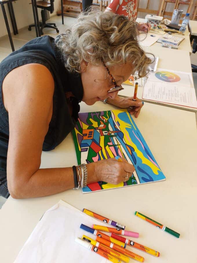 Abstract landschap op canvas met acrylstiften. Op advies van mijn tekendocente gebruikte ik de Molotow acrylstiften. Prachtige kleuren, de stiften zijn weer na te vullen en werken uitmuntend!