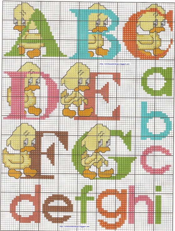 - klik hier voor patronen van Hello Kitty, beren, Mickey Mouse en nog veel meer alfabet patronen