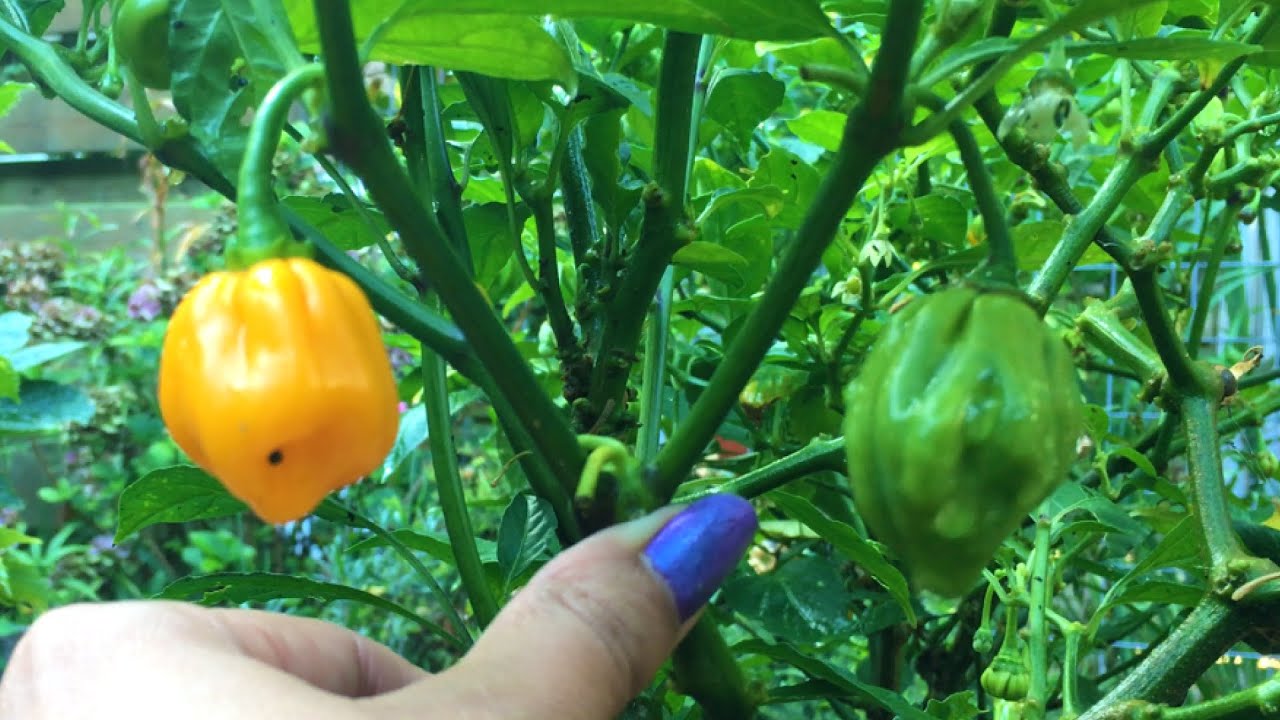 - De paprika’s zijn plukrijp als je het vruchtvlees niet meer kunt induwen en ze helemaal gee, donkergroen of oranje zijn