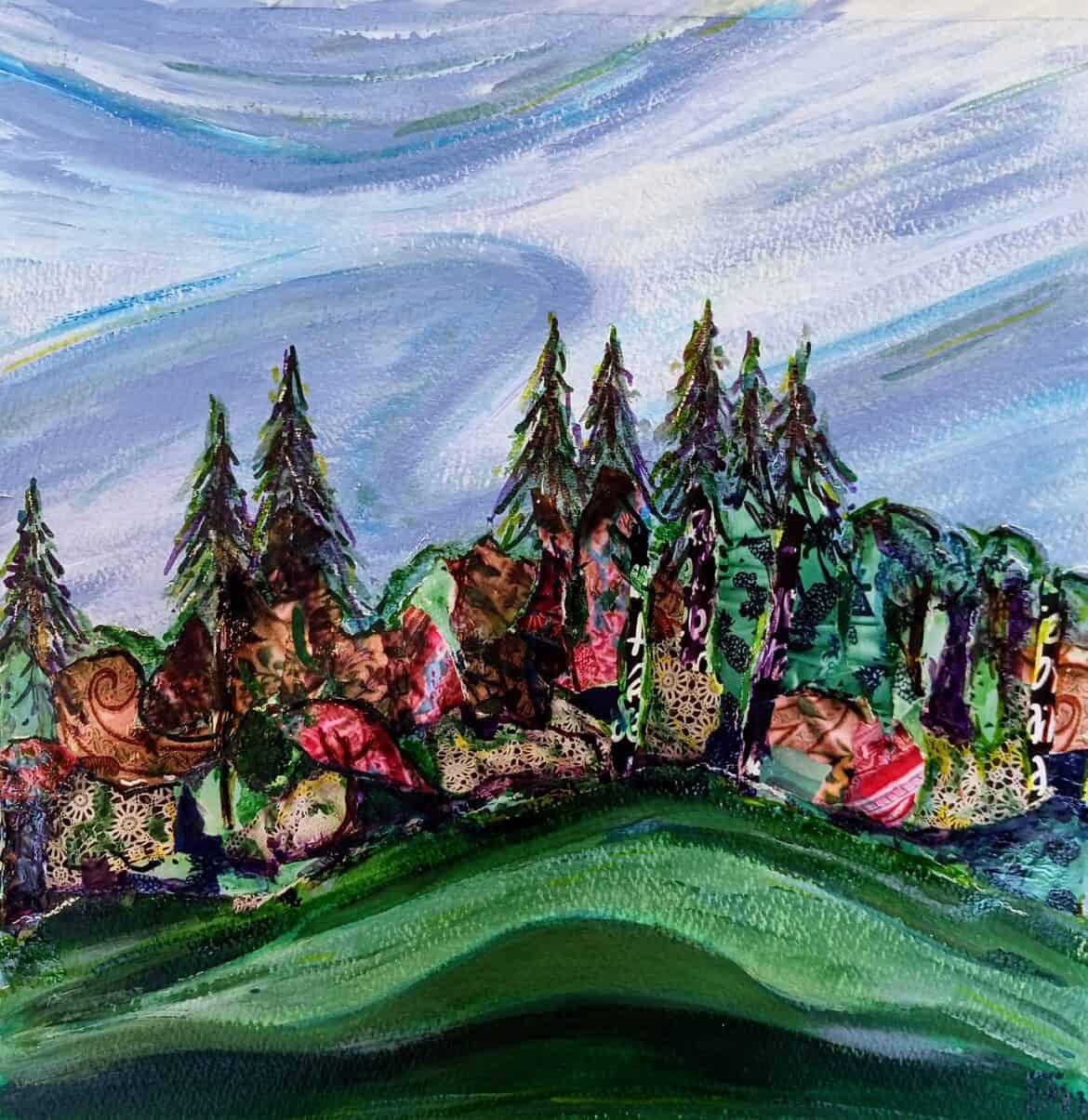 Gemengde techniek abstract bos als onderwerp om direct aan de slag te gaan met tekenen, plakken en schilderen. Ik heb eerst een, voor mij, inspirerend plaatje gezocht om te starten.