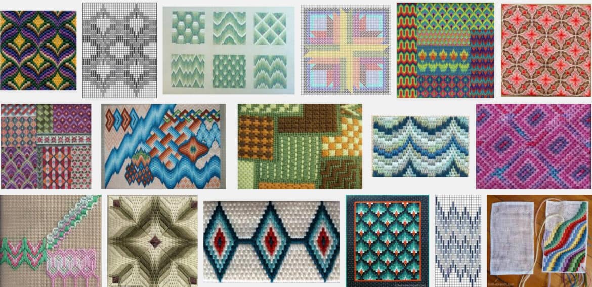 Een duidelijke omschrijving van de Bargello borduursteek kan je hier vinden. Wat nou zo leuk is als je dit allemaal ziet, dat je misschien het idee krijgt van waar en hoe kan ik deze technieken toepassen in moderne werkstukken.