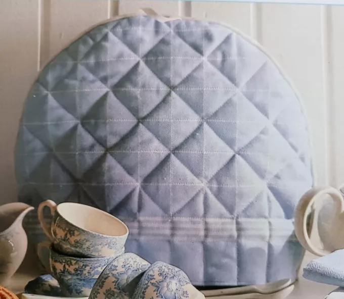 Theemuts maken uit theedoeken en dikke fiberfill. Waarbij de tip om nieuwe theedoeken eerst even te wassen, om krimp te voorkomen.